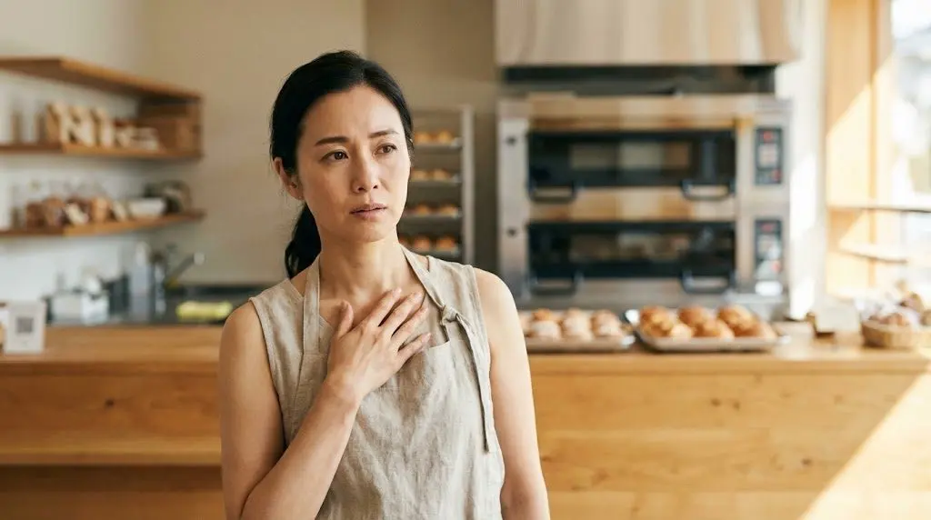 Over the past two months, she noticed that during the afternoon baking rush, whenever she bent down to pull trays from the oven, her chest would feel tight — as if someone were pressing a palm against her sternum. Sometimes the heaviness would radiate to her left shoulder, even faintly reaching her back. She chalked it up to muscle strain from bending too long, or acid reflux from sampling too many fresh croissants.