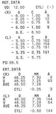 KRT 的 H、V 差距怪異,或 CYL 很大。需注意圓錐角膜等狀況。早期發現處理較好。
