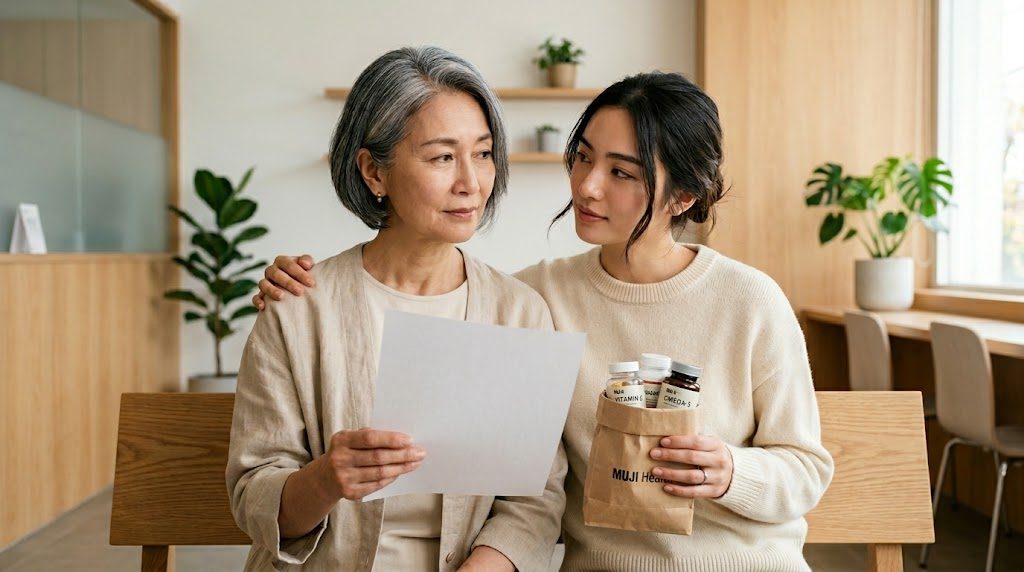 星期三的早上,診間外坐著一對母女。六十多歲的陳媽媽手裡捏著剛出爐的健檢報告,眉頭深鎖地看著上面的紅字。坐在旁邊的女兒雅婷,懷孕剛滿八週,正拿著手機搜尋孕婦營養品的資訊。秋天的早晨有點微涼,診間裡的空氣卻因為這些體檢數據顯得有些緊繃。